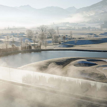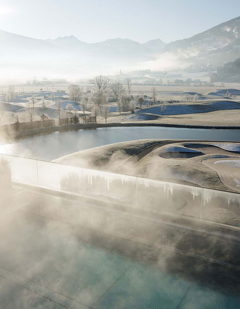 Der Dachgarten-Pool mit Panoramablick lädt zum Loslassen ein, während das Kältebecken im 3. STOCK für belebende Erfrischung nach der Sauna sorgt.