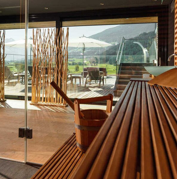 Kuschelige Bademäntel, zusammen mit Badeschuhen und einer Wellness-Tasche, warten in deinem Zimmer auf dich. Badetücher findest du direkt im Wellnessbereich.