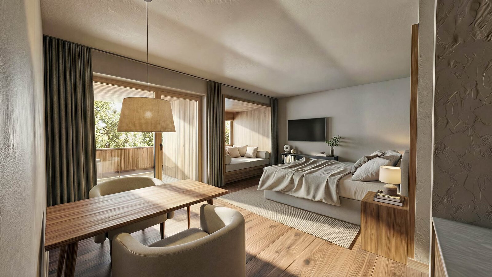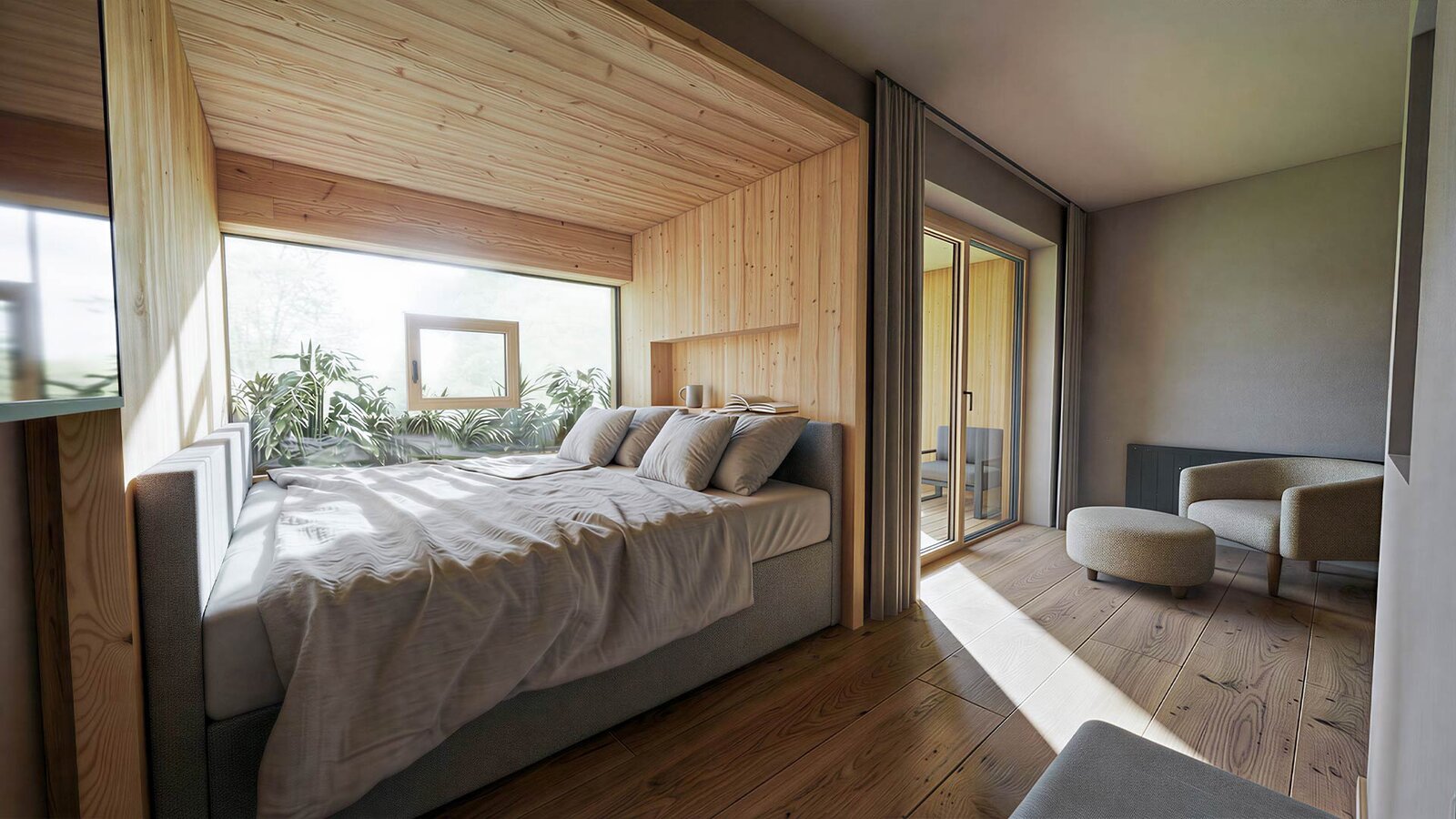 Der Panorama-Fitnessraum bietet optimale Voraussetzungen für ein individuelles Training mit high-end Technogym-Geräten in angenehmer Atmosphäre. Wer die Bewegung lieber in Ruhe und im Einklang der Natur erleben möchte, findet im Freiluft-Yogaraum einen besonderen Rückzugsort unter freiem Himmel.
